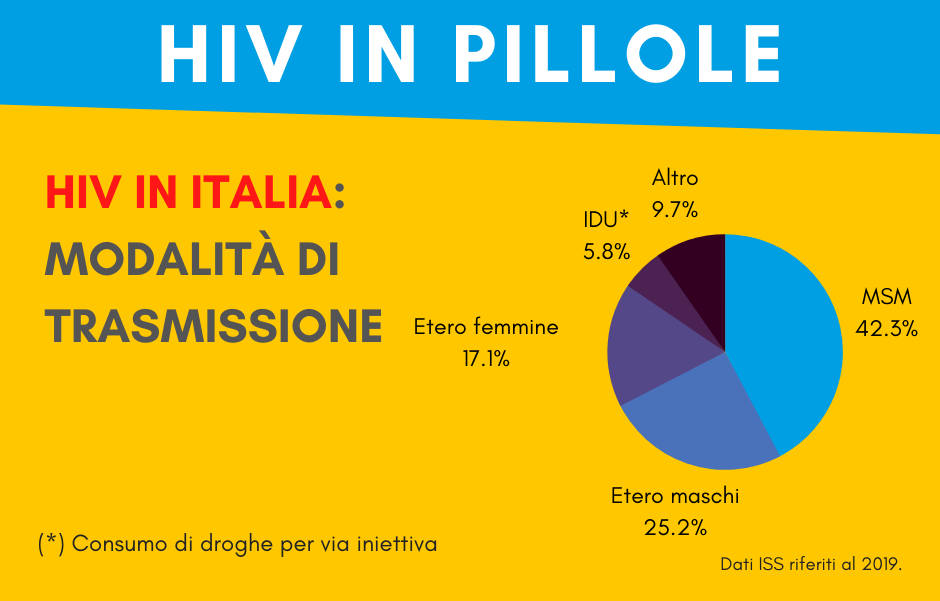 Di questi, il 50,1% delle infezioni sono riferibili a maschi che fanno sesso con maschi (MSM), il 29,1% a maschi eterosessuali, il 15,9% a femmine eterosessuali e il restante 4,9% al consumo di droghe per via iniettiva.