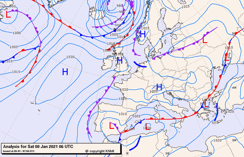 All'inizio della prossima settimana alta pressione in graduale rinforzo sull'Europa occidentale, con tempo stabile e temperature leggermente sotto la media a causa di una debole ma fredda circolazione da nord-est.