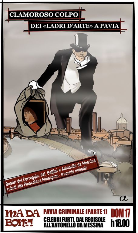 La questione che invece ci incuriosisce, è come buona parte delle sottrazioni di opere d’arte a seguito di furti, siano avvenute nella seconda parte del 1900. -1964 furto al Castello Visconteo della sella Plicatilis. -1970 furto alla Pinacoteca Malaspina dei quadri di Antonello da Messina, Correggio e Bellini. - 1984 furto dalla sagrestia della Certosa di Pavia del Trittico di Baldassare degli Embriachi. Tutti questi furti furono messi a segno eludendo sorveglianze e sofisticati sistemi di allarme e tutti, a vario titolo, durante l’esecuzione o il loro recupero a volte rocambolesco, si portano al seguito una serie di strane e misteriose vicende ambientate tra ladri, facoltosi trafficanti d’arte, mafiosi, informatori della Polizia e irriducibili investigatori dell’allora neonato Nucleo dei Carabinieri per la tutela del patrimonio artistico.