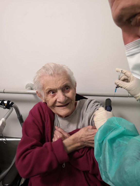 “Per quanto riguarda invece la RSA – prosegue il Presidente– la signora più anziana che si è sottoposta al vaccino è la sig.ra Giulia, classe 1922, residente in Casa Famiglia dal 2016. La sua è una storia avventurosa, tanto che dopo aver iniziato la sua carriera professionale come operaia tessile, in gioventù ha lavorato anche a Tripoli in Libia. E’ invece la sig.ra Luigia la residente più giovane che oggi ha ricevuto il vaccino: dopo aver lavorato in un calzaturificio della zona, ha mantenuto ancora oggi come suo hobby principale quello di lavorare coperte da donare ai volontari della Madonna di Lourdes”.