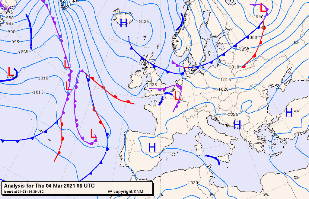 A partire da Venerdì inzieranno infiltrazione di aria fredda da NE, favorite dallo sviluppo di un nuovo anticilone sulle Isole Britanniche: ciò determinerà un temporaneo peggioramento ed una netta diminuzione delle temperature tra Venerdì e Sabato.