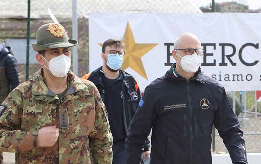Francesco Figliuolo, commissario straordinario per l'emergenza Covid e Fabrizio Curcio, capo della Protezione civile si sono vaccinati oggi al drive through della Difesa alla Cecchignola, a Roma.