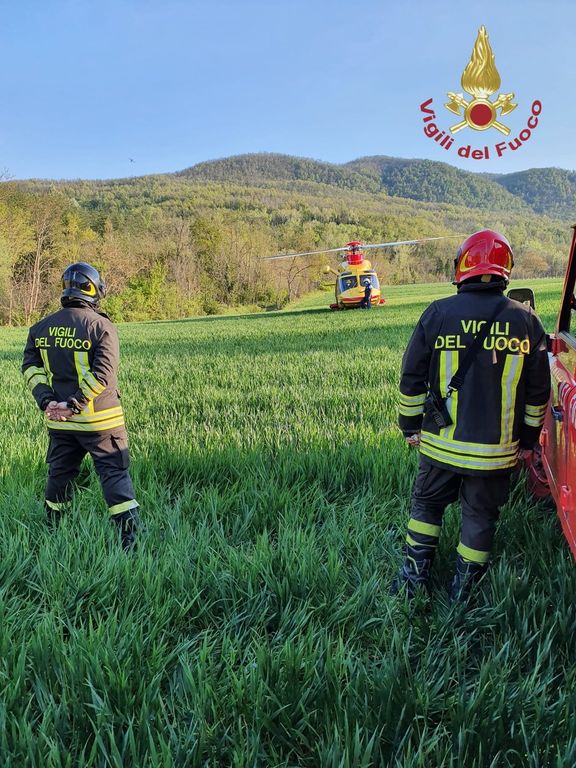 Un uomo di 50 anni che faceva manutenzione ad un mezzo agricolo è rimasto incastrato tra gli ingranaggi di un attrezzo rimanendo gravemente ferito ad una gamba.