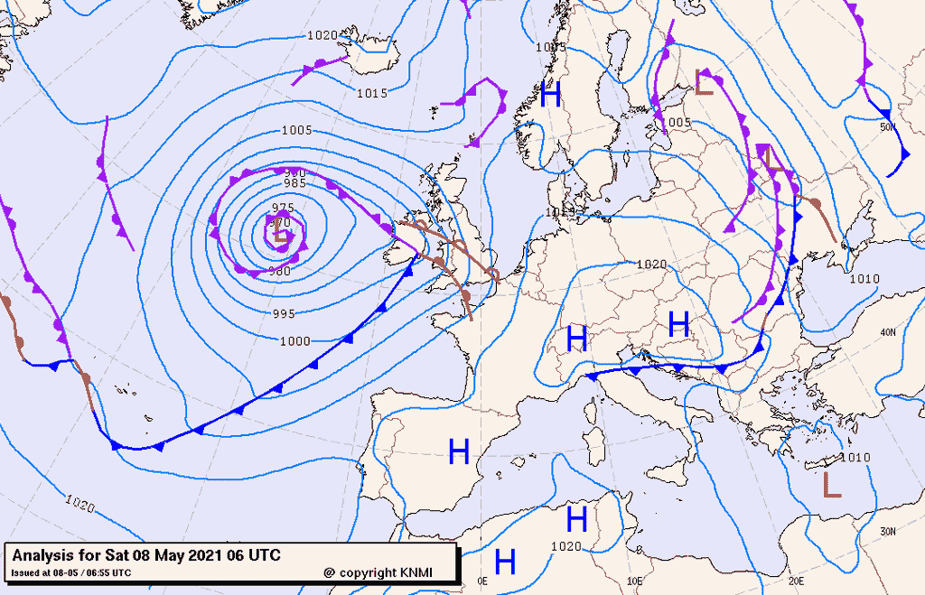 Da lunedì, un'ampia area depressionaria centrata sulla Gran Bretagna apporterà sulla nostra regione un generale peggioramento del tempo con i massimi effetti nella giornata di martedì.