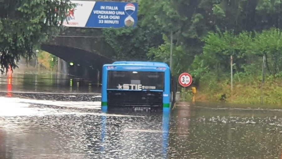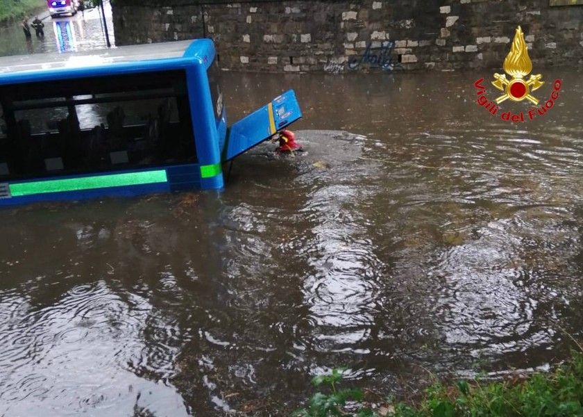 È accaduto oggi nel ponte della stazione, che con l'acquazzone in corso sulla città si è trasformato in una trappola per i veicoli. Così un pullman della Stie che è transitato, non ha fatto in tempo a uscire dal sottopasso e la situazione si è fatta decisamente pericolosa. Sono intervenuti i vigili del fuoco che hanno così tratto in salvo autista e passeggeri: se la sono cavata solo con tanto spavento.