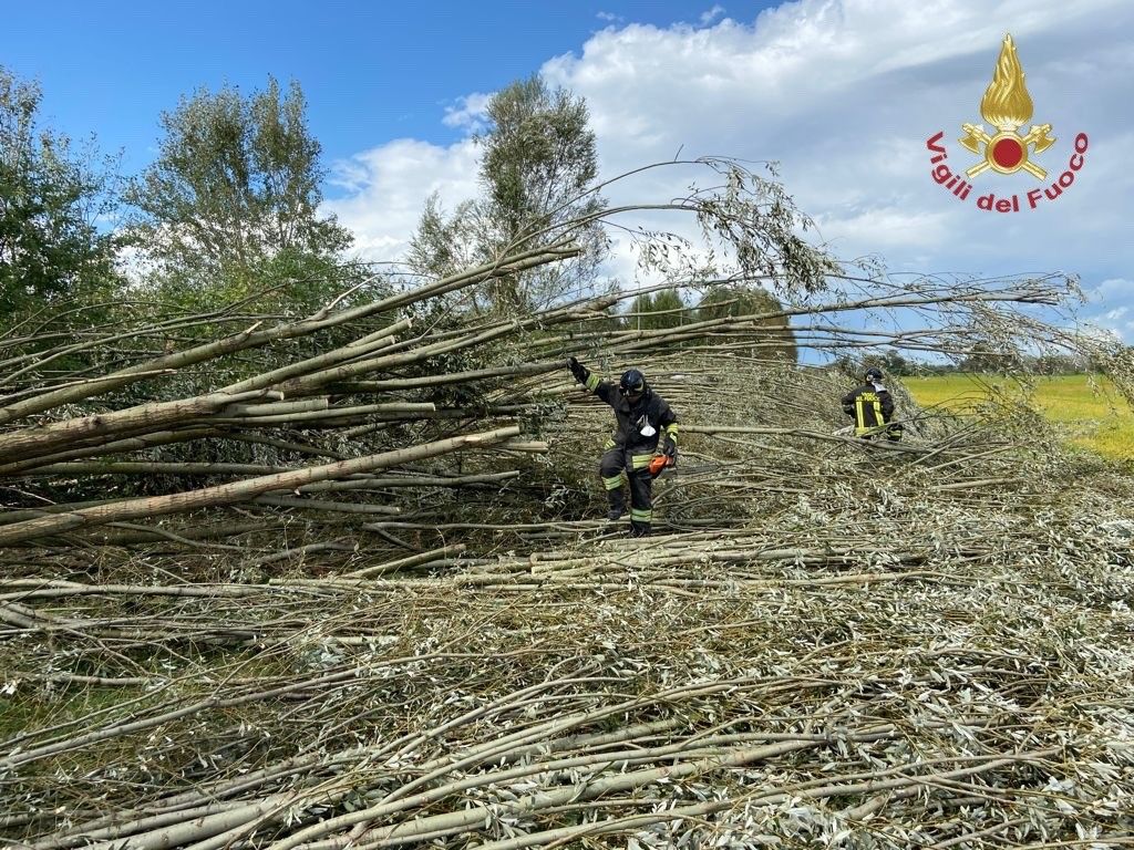 Una squadra dei Vigili del Fuoco di Pavia è intervenuta per diverse richieste di soccorso per alberi caduti su sede stradale, tetti danneggiati dal vento e tegole che hanno colpito diverse vetture.