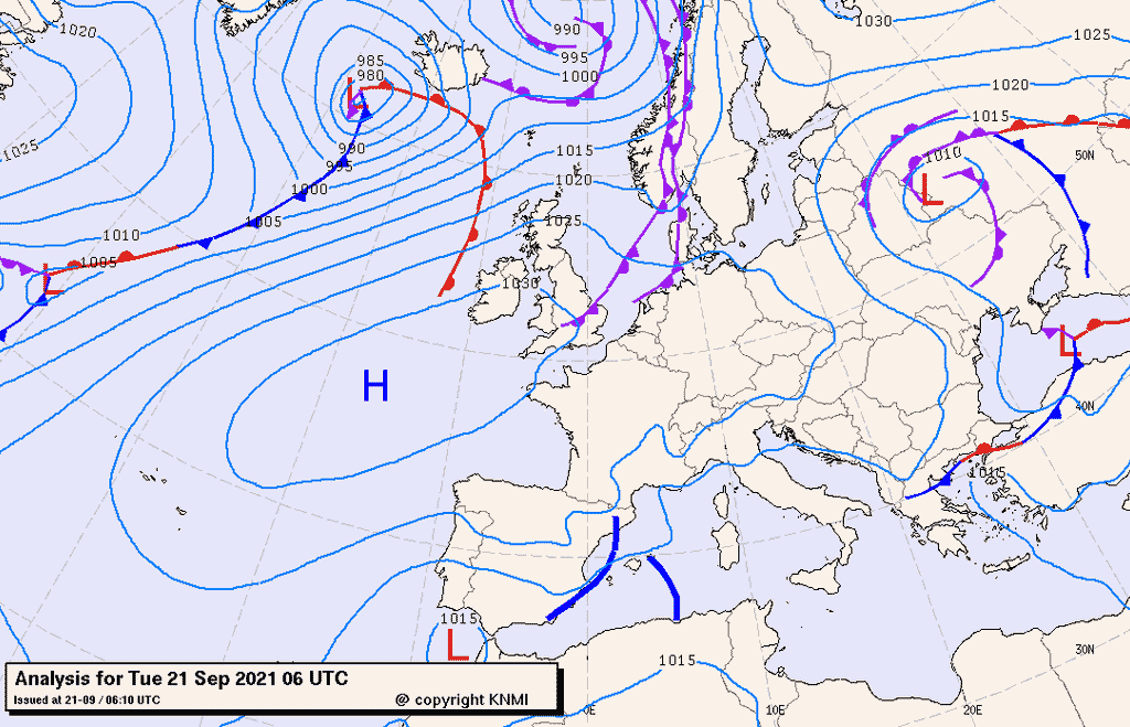 Pressione atmosferica in deciso rialzo per la graduale espansione dell'Anticiclone delle Azzorre, che favorirà un ritorno della stabilità atmosferica e occasioni per foschie mattutine in pianura.