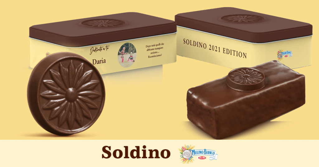 Il nuovo soldino, in edizione limitata, promette di essere del tutto uguale a quello originale (a parte la forma originariamente quadrata e oggi rettangolare) con il classico pan di spagna, il ripieno di crema al cacao e e la glassa al cioccolato.La novità è più che altro nella distribuzione (almeno per ora): la merendina, in linea coi tempi, sarà lanciata infatti solo sulla piattaforma di e-commerce del marchio Barilla, Dedicato a te, che permette di acquistare i prodotti Mulino Bianco e Pan di Stelle in confezioni personalizzabili con un nome, una foto e una dedica.