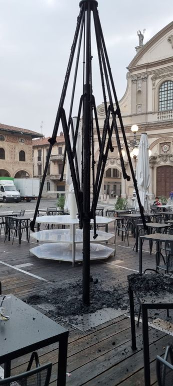 Ennesimo atto vandalico che ha visto protagonista il centro di Vigevano. La scorsa notte, presumibilmente intorno alle 2, alcune persone hanno dato fuoco agli ombrelloni presenti all'esterno di due locali, fortunatamente i sistemi antincendio hanno fatto il loro dovere e si è evitato il peggio visto e considerato il plateatico in legno sul quale poggiavano all'interno del dehor di uno degli esercizi coinvolti dal raid notturno.