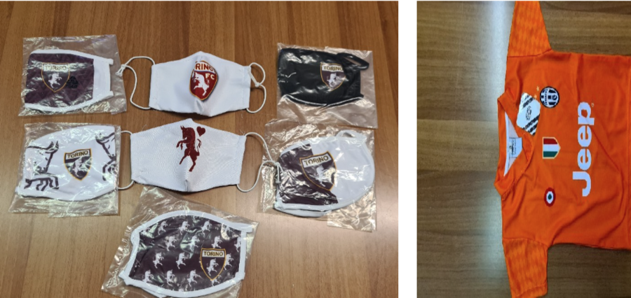 L’attività d’indagine ha avuto inizio nel trascorso mese di maggio quando, una pattuglia delle sezione Polizia Stradale di Vercelli, in servizio di vigilanza, ha effettuato un controllo nei confronti di un uomo, residente in provincia di Vercelli, che si trovava alla guida di un furgone risultato trasportare numerosi capi di abbigliamento e gadget contraffatti e in particolare 806 pezzi tra mascherine protettive e articoli sportivi, relativi a svariate squadre di calcio nazionali e internazionali. Le magliette e le mascherine protettive, con stampati nomi e numeri di gioco di vari calciatori erano destinate alle bancarelle che solitamente si trovano fuori dagli stadi o mercati rionali. L'uomo veniva pertanto segnalato all’autorità giudiziaria per il reato di detenzione, ai fini del commercio, di prodotti aventi segni distintivi contraffatti nonché per il reato di ricettazione mentre, tutta la merce contraffatta rivenuta, è stata sottoposta a sequestro.