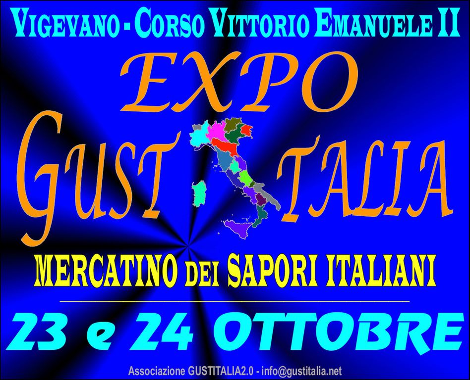 Dopo oltre un anno ritorna, con il rispetto delle regole dopo il COVID19 il 23 e 24 Ottobre EXPO GUSTITALIA MERCATINO DEI SAPORI organizzato dall’Associazione GUSTITALIA2.0 che si svolgerà come sempre, in Corso Vittorio Emanuele e Via Cesare Battisti a VIGEVANO.