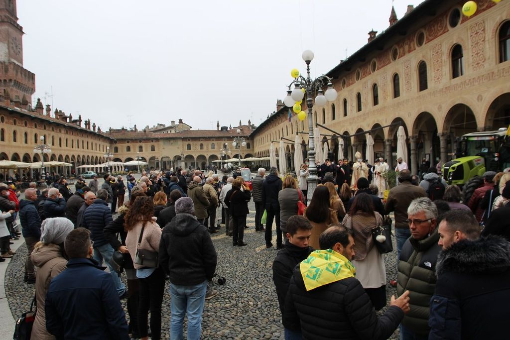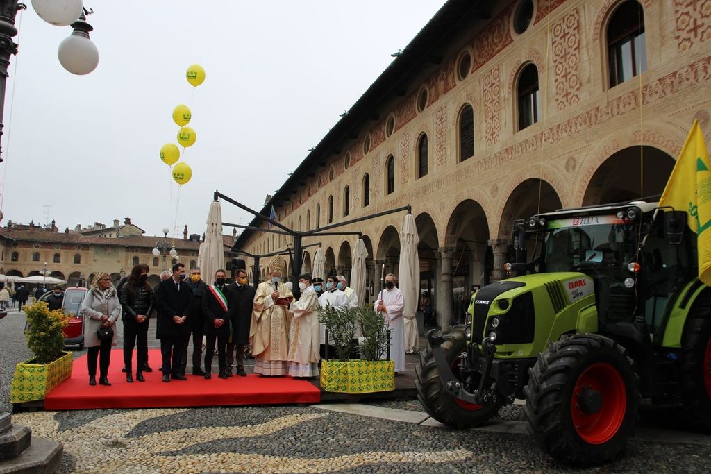 Grande partecipazione oggi a Vigevano, dove Coldiretti Pavia ha celebrato la 71esima Giornata del Ringraziamento colorando di giallo il centro cittadino. Ricco il programma della mattinata, che prevedeva la Santa Messa in Duomo celebrata dal Vescovo di Vigevano monsignor Maurizio Gervasoni, seguita dalla benedizione dei trattori in piazza Ducale e da un agri-aperitivo a km zero al mercato di Campagna Amica nella vicina piazza Martiri della Liberazione.