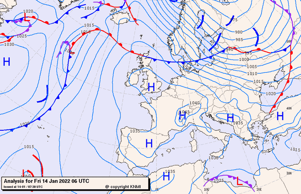 Un vasto promontorio anticiclonico centrato sull'Europa centro-occidentale garantirà sulla nostra regione tempo soleggiato e con gelate diffuse nella notte.