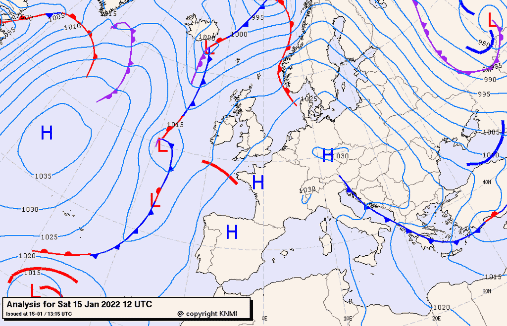 Un vasto promontorio anticiclonico centrato sull'Europa centro-occidentale garantirà sulla nostra regione tempo soleggiato e con gelate diffuse nella notte.
