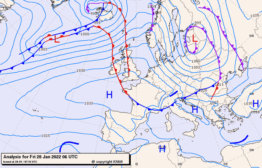 Prosegue la fase di tempo dominata da un forte campo di alta pressione sull'Europa occidentale, tuttavia nella giornata odierna la coda di un vasto fronte freddo in discesa verso l'area Balcanica interesserà il nord Italia determinando un rinforzo dei venti in quota, una graduale dissoluzione delle nebbie e delle nubi basse in pianura, ed un generale calo delle temperature a partire dalla serata.