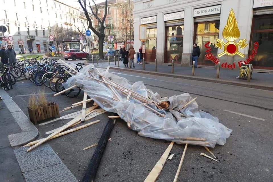 Lamiere di capannoni pericolanti, alberi e rami caduti. Questa mattina le raffiche di vento, che secondo le previsioni avrebbero potuto arrivare a 110 chilometri orari, hanno creato non pochi disagi a Milano e nell’hinterland milanese. Per fortuna, per il momento, senza provocare feriti.