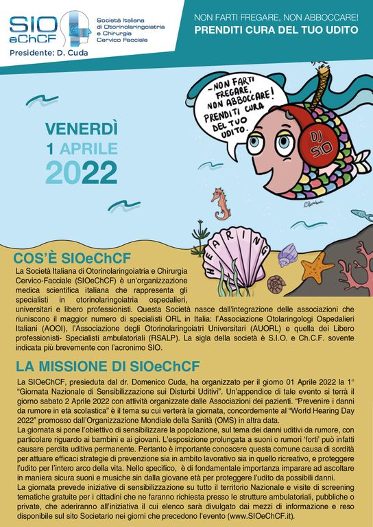 Il 1 aprile 2022 è prevista la prima Giornata di Sensibilizzazione dell’Udito: “Prevenzione dei danni da rumore in età scolastica”.