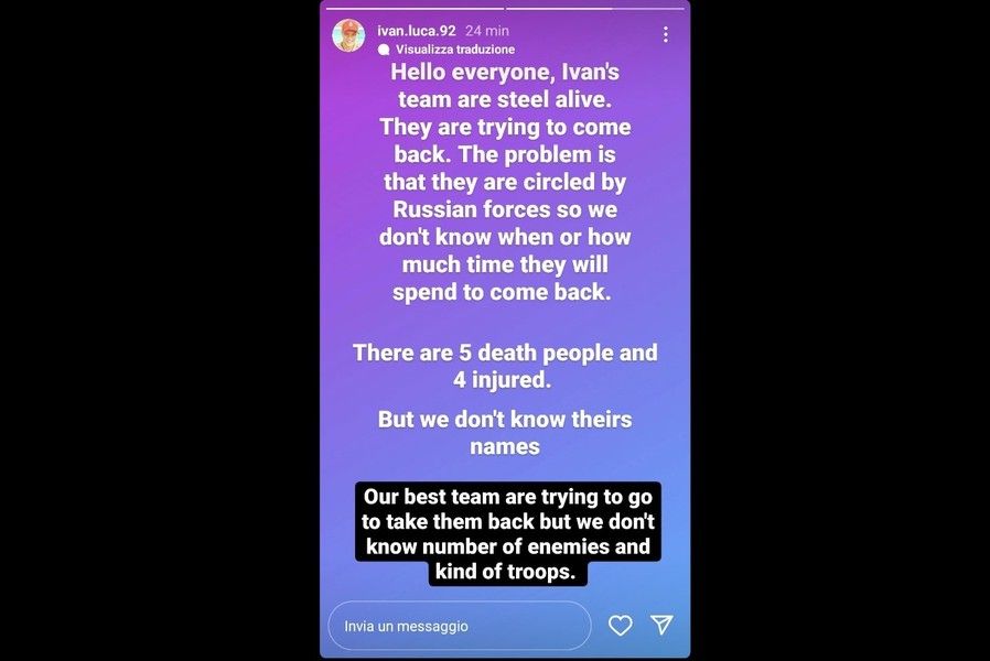 In una nuova storia comparsa sul profilo Instagram gestito da altri si legge che «il gruppo di Ivan è ancora vivo. Stanno cercando di tornare indietro. Il problema è che sono circondati dalle forze russe, quindi non sappiamo quanto tempo impiegheranno a rientrare.