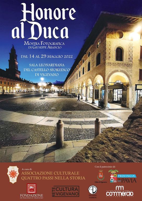 Prende il via sabato 14 maggio la mostra fotografica intitolata Honore al Duca, voluta e realizzata da Giuseppe Arancio. La Sala Leonardiana nel cortile del Castello Sforzesco di Vigevano ospiterà i magnifici e suggestivi 80 scatti che permetteranno ad ogni visitatore di tuffarsi nel passato riscoprendo segreti e storia della Piazza Ducale voluta nel 1492 dal duca Ludovico Il Moro.