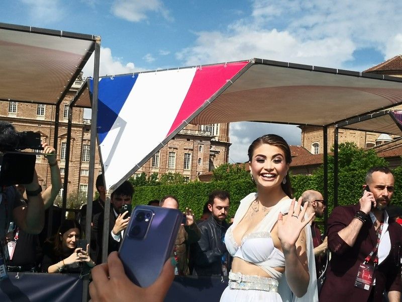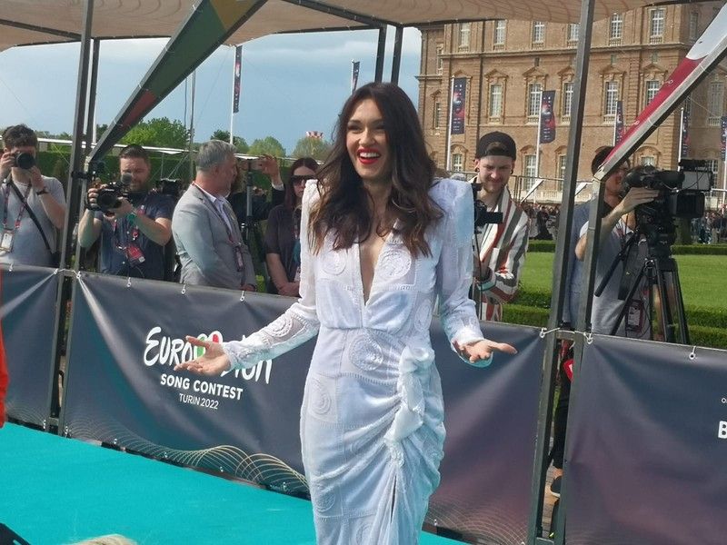 È Emma Muscat, che rappresenta Malta, ad aprire la sfilata delle 40 delegazioni sul "Turquoise Carpet" di Venaria Reale per la cerimonia di apertura della 66esima edizione degli Eurovision Song Contest. Nota in Italia per aver partecipato alla 17° di Amici di Maria De Filippi, sul tappeto inaugurale si è presentata con un abito bianco tempestato di punti luce, così come i sandali che sono allacciati alla caviglia con nastri azzurri.