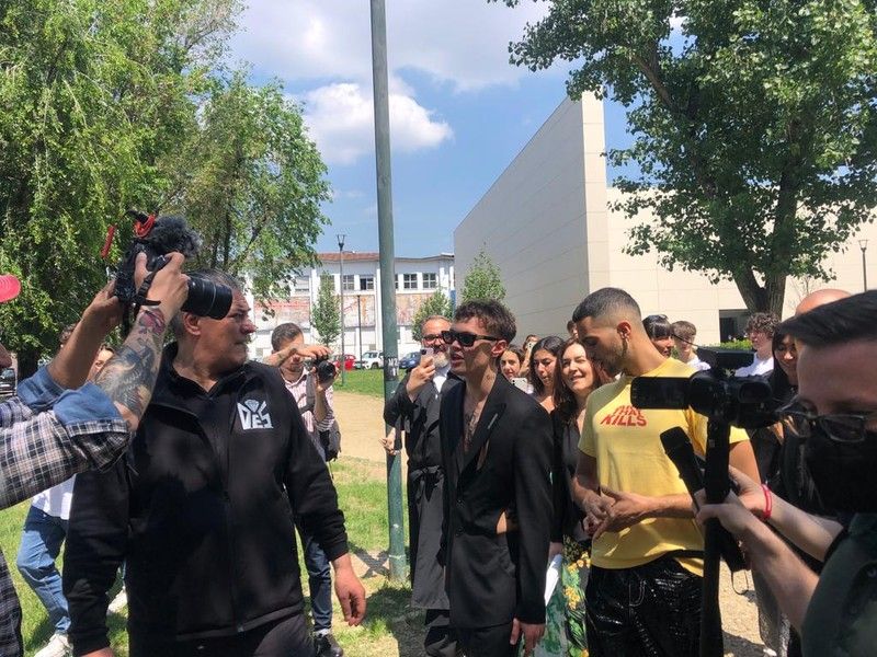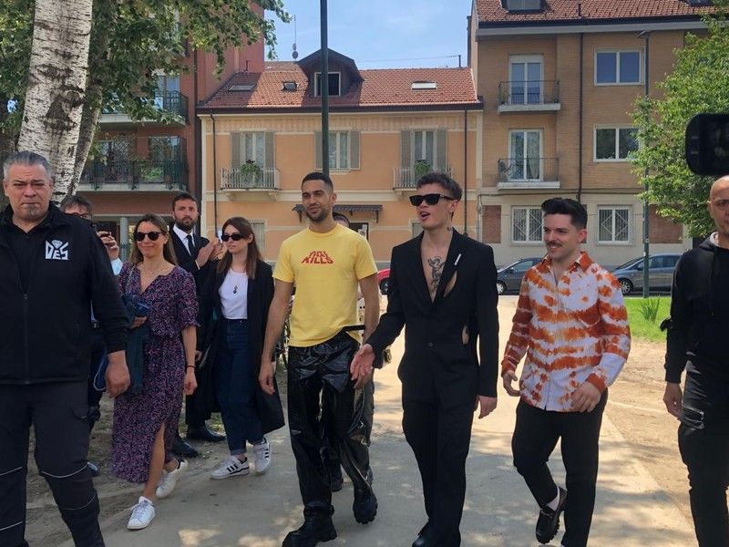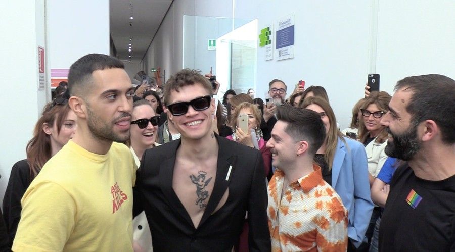 Bagno di folla per Mahmood e Blanco alla Fondazione Sandretto Re Rebaudengo. Il duo in gara all’Eurovision Song Contest ha fatto tappa alla galleria in occasione della mostra fotografica di Luigi & Iango di cui sono stati protagonisti per il servizio di Vanity Fair.