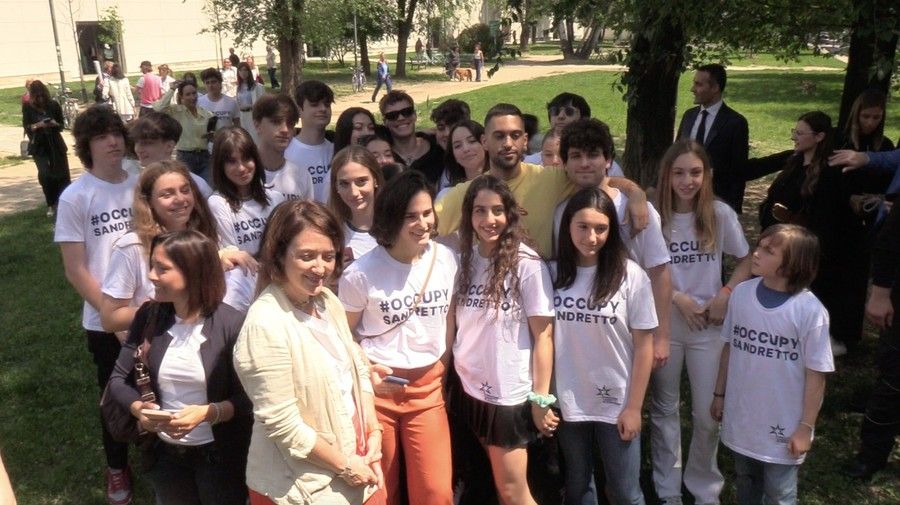 Accolti dalla padrona di casa, Patrizia Sandretto, hanno fatto una veloce visita all’esposizione e dopo hanno scattato diversi selfie con i fan accorsi numerosi alla Sandretto per conoscere i loro idoli.