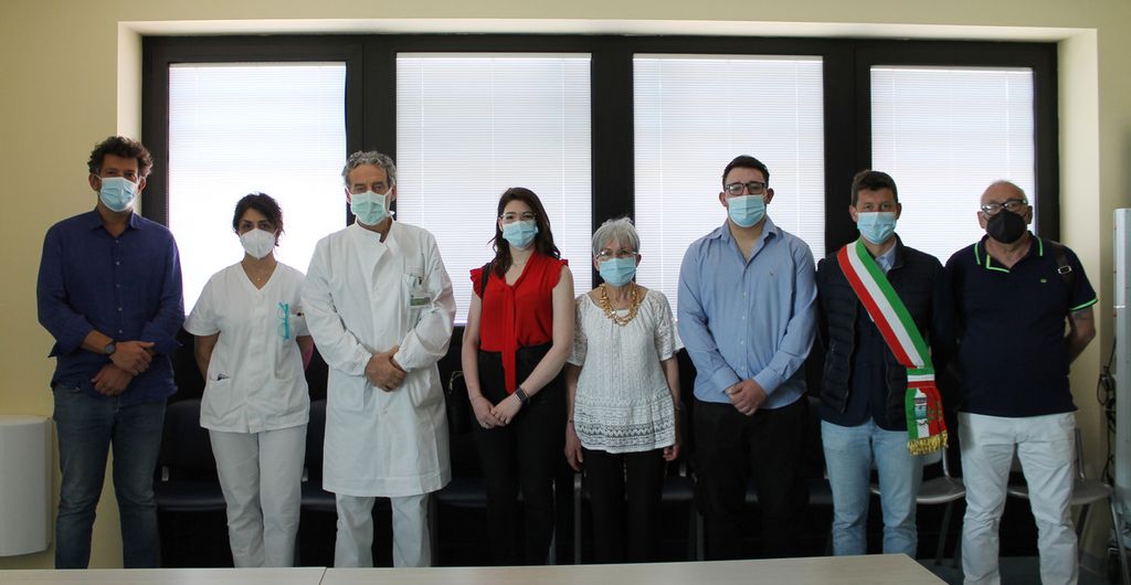 Alla consegna della donazione erano presenti il presidente della Fondazione I.R.C.C.S Policlinico San Matteo; il sindaco di Albuzzano; il direttore della UOC Ostetricia e Ginecologia del Policlinico San Matteo; il presidente della Pro Loco e i familiari della paziente.
