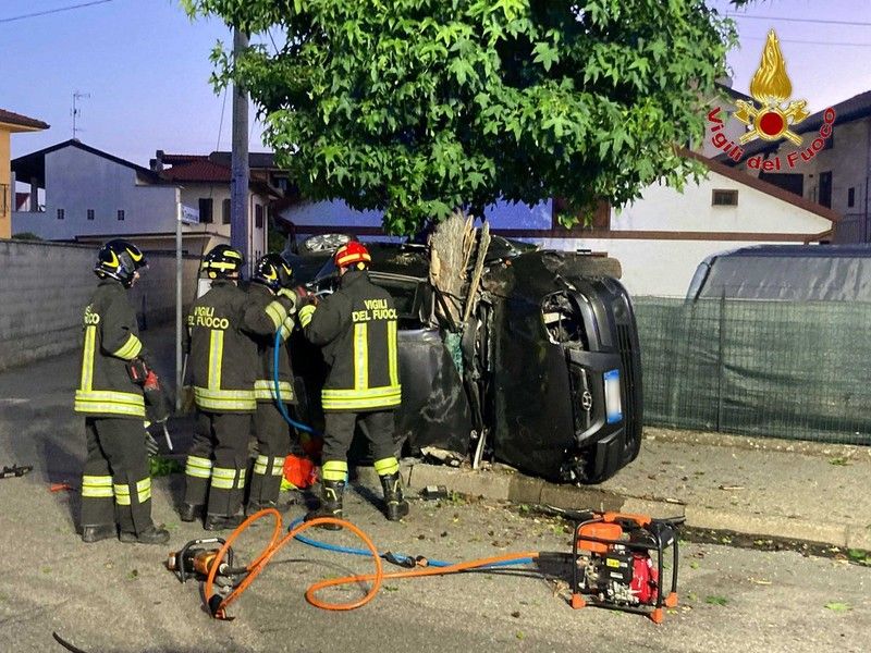 Per cause ancora da chiarire un un'auto ha perso il controllo ribaltandosi contro un albero.