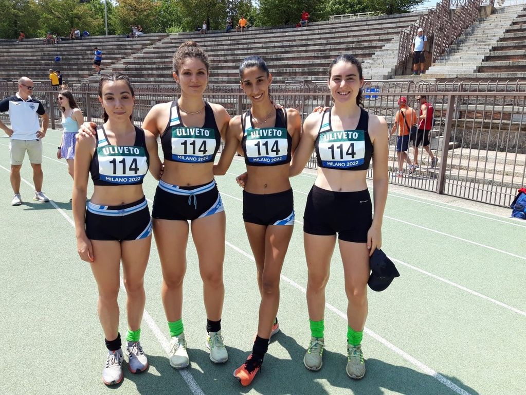 La staffetta 4x400 in gara agli Italiani allieve, con da sx Visconti, Oddo, Pirolini e Pilla