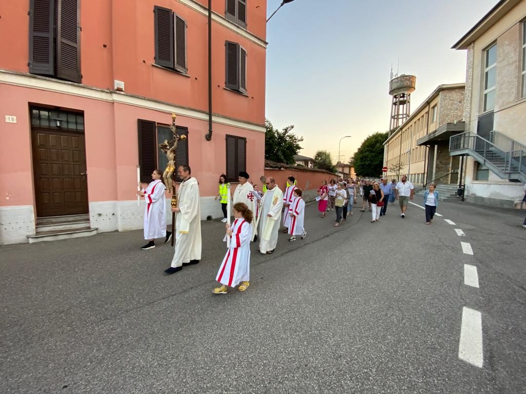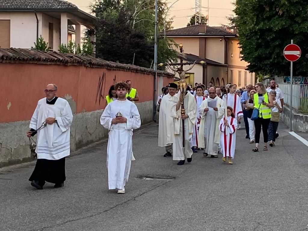 La celebrazione che si è svolta per le strade di Pieve del Cairo lambendo l'area in prossimità del fiume Po, oramai sempre più ridotto a un rigagnolo d'acqua a causa della perdurante siccità che sta colpendo duramente il territorio lomellino e non solo.