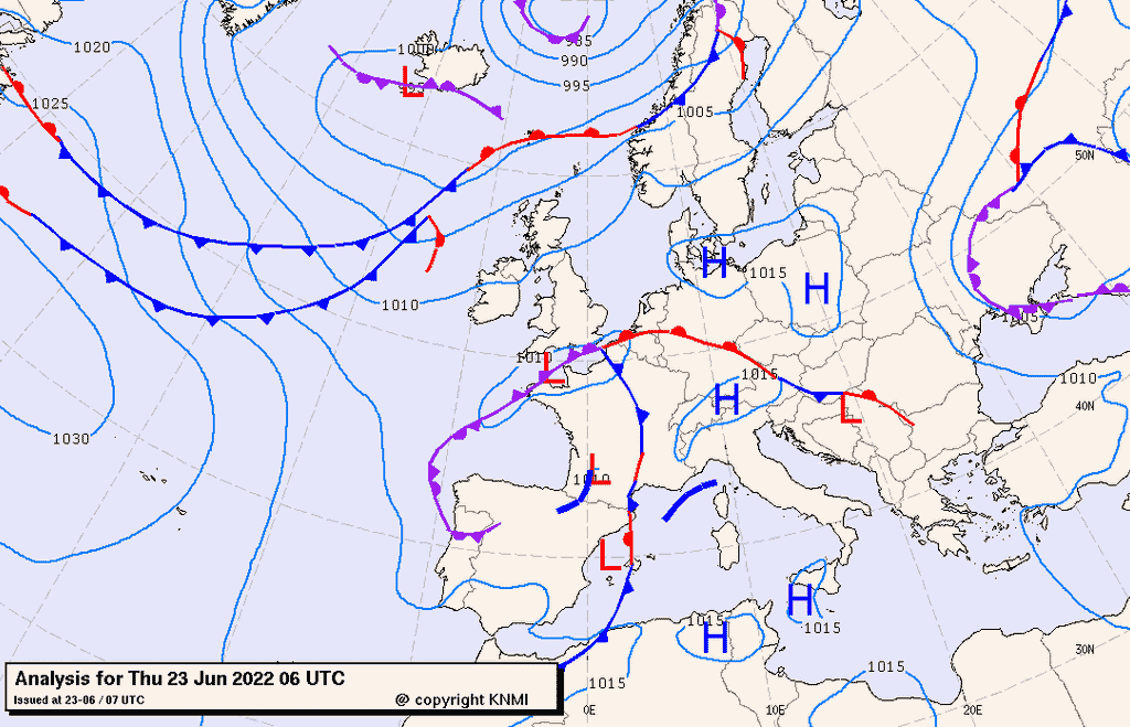 Tra oggi e questo fine settimana il Nord-Italia si troverà lungo il bordo meridionale di una saccatura centrata tra la Gran Bretagna e la Penisola iberica mentre a sud-est avremo la presenza di un robusto anticiclone.