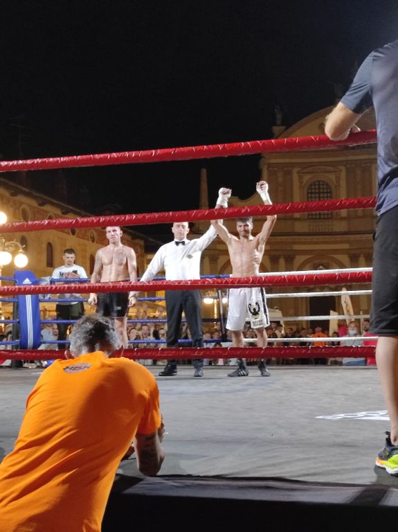 Sabato scorso, la piazza Ducale di Vigevano, è stata la splendida cornice che ha visto il ritorno sul ring di Alberto Rizzi, pugile professionista de La Costanza 1884 A.Massucchi.