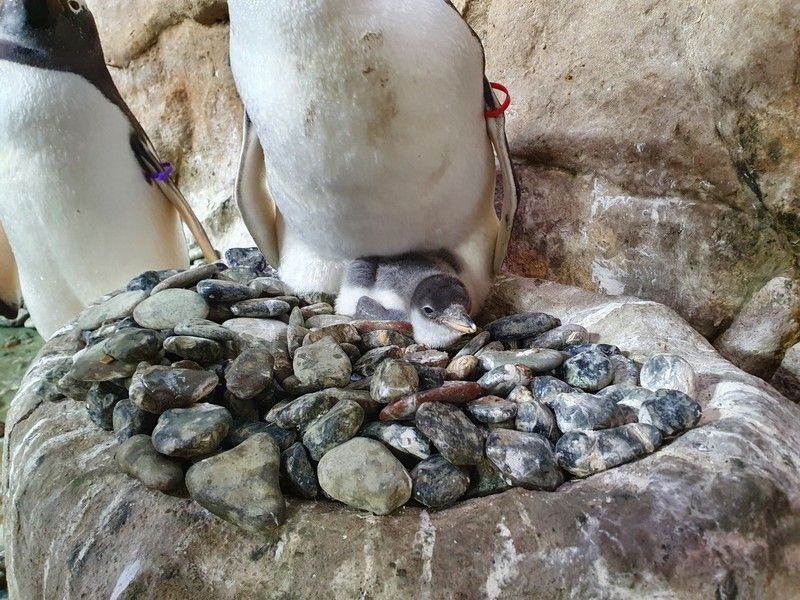 La vasca subantartica, dedicata proprio ai pinguini, ha visto la nascita di un pinguino Papua, nato dalla coppia formata da papà Kowalski, primo pulcino della sua specie a nascere all’acquario nel luglio del 2017, e mamma Rosi e di tre pulcini di Magellano.