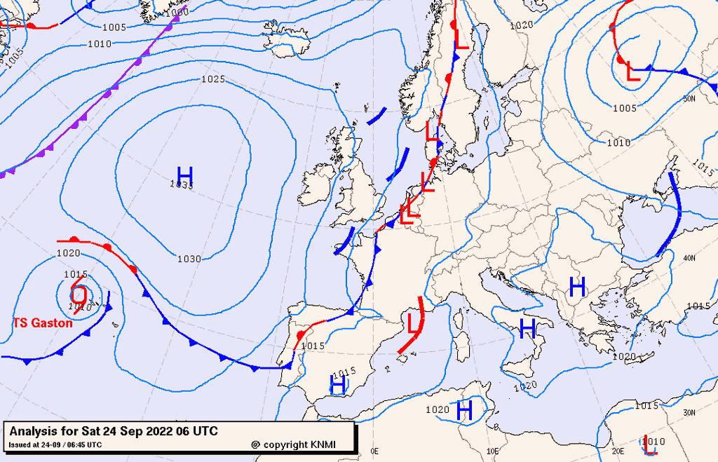 Lungo il bordo orientale dell'alta pressione delle Azzorre, ben piazzata sul medio Atlantico, scivola una moderata saccatura nord-atlantica, la quale tende ad affondare sulla penisola Iberica. La rotazione delle correnti dai quadranti sud-occidentali porrà le basi per un certo peggioramento del tempo nel corso della giornata odierna, con ritorno di deboli piogge diffuse su tutta la regione.