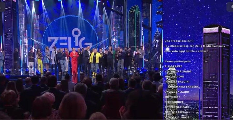 Tornando in studio per il finale, è andato quindi in scena quell'ultimo momento davvero toccante: tutto il teatro in piedi, con Max in mezzo ai protagonisti di Zelig, ad applaudire Bruno. «Grazie per i momenti meravigliosi che ci avete fatto passare assieme» le parole di Vanessa Incontrada.