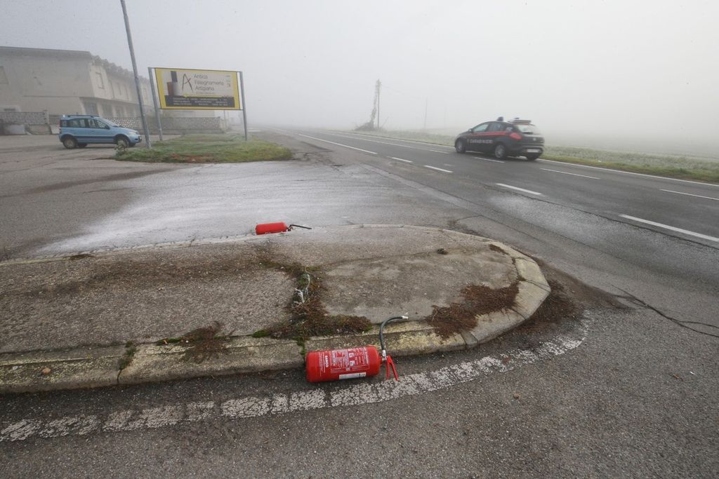 Sul tratto stradale è stato rinvenuto anche alcuni estintori utilizzato dai banditi durante le fasi della rapina.