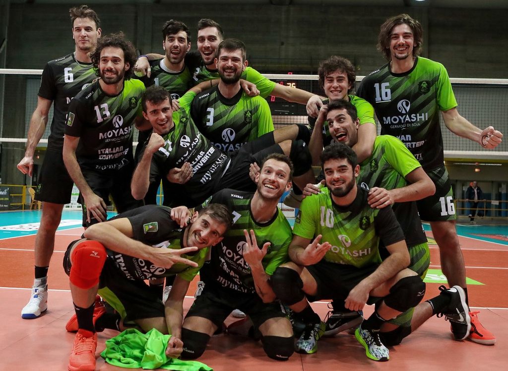 Ma non c’è storia, Giannotti con un ace manda a set point i suoi (24-12) e Peric mura il definitivo25-12.Nel terzo parziale la Moyashi trova subito con Giannotti il break (2-0) che conserva sino al 7-7 di Mandilaris. Baratti in regia si affida ad Umek in 4 per il cambio palla e il VTC inizia a trovare colpi e spazio (10-10). Peric spegne la luce a muro per gli attaccanti veneti e spunta un primo break (12-10), per poi fermare Dalmonte e guadagnare il +4 (15-11). Mazzon (17-16) e Dal Col a muro firmano la parità (17-17) sfruttando il calo di concentrazione di Puliti e compagni. Ma Baciocco da 4 e l’acedi Romagnoli fanno ripartire la Moyashi che stacca il 21-19 nel momento clou del set. Bellucci imbocca Giannotti che in parallela schianta il 22-19.