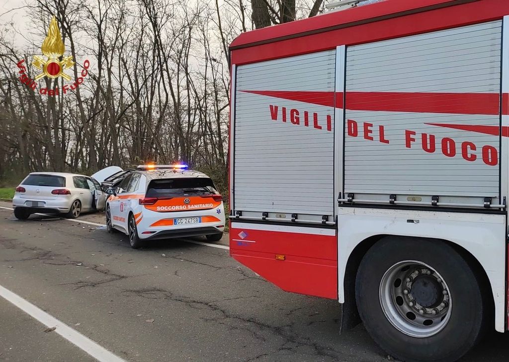Il secondo incidente, avvenuto intorno alle 9:45, si è verificato a circa 200 metri dal primo sinistro in prossimità della rotonda che precede il centro commerciale. Nello scontro tra due auto sono rimaste coinvolte 3 persone: sul posto sono scattati i soccorsi del 118 con due ambulanze (Croce Rossa di Mortara, Croce Rossa di Vigevano) automedica, autoinfermieristica, coadiuvate dai Vigili del fuoco di Vigevano ed è stato allertato anche l'elisoccorso proveniente da Milano. Nell'impatto sono rimasti feriti una 26enne, un uomo di 29 anni, trasportati in codice verde al pronto soccorso del civile di Vigevano. Un bimbo di 4 anni è stato invece elitrasportato in codice giallo all'ospedale Niguarda di Milano.