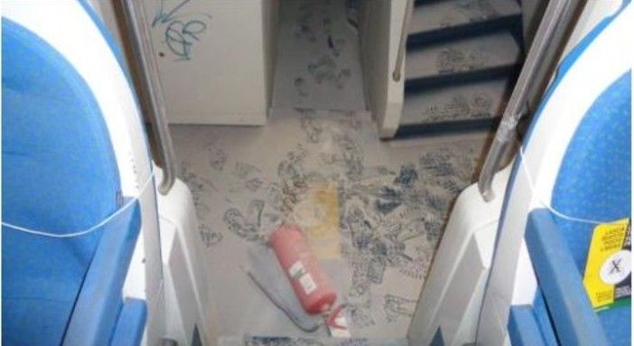 Alle precedenti ore 20.20 il personale della sezione radiomobile unitamente a quello della stazione carabinieri di Sartirana Lomellina è intervenuto su richiesta pervenuta su utenza 112, presso la stazione ferroviaria di Mortara ove l’extracomunitario, in stato di alterazione, aveva, sul treno Pavia-Vercelli, svuotato due estintori all’interno di una carrozza e spiombato e tirato varie leve dei freni di emergenza, nonché, dell’apertura delle porte in emergenza.