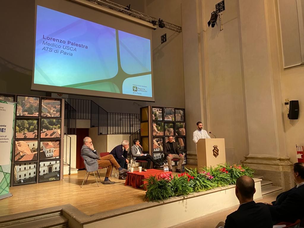 Giorni difficilissimi, quelli di inizio 2020, ripercorsi negli emozionanti racconti del prof. Fausto Baldanti, Direttore U.O.C. Microbiologia e Virologia dell’IRCCS San Matteo che per primo ha consegnato un referto Covid e di Cristina Cavaliere, infermiera del Policlinico che ha assistito e trasportato il primo paziente Covid. Si sono poi susseguite le testimonianze dell’infermiere dell’ASST di Pavia Ciro Demarinis, dell’operatore USCA (Unità Speciali di Continuità Assistenziale) Lorenzo Palestra, che ha raccontato l’angoscia dei giorni di lockdown e delle difficoltà, a tratti tragiche, della gestione della situazione all’inizio della pandemia, e i racconti del “diavolo volante” Mattia Morelli, tra gli operatori di ATS che hanno seguito in prima persona lo sviluppo della campagna vaccinale sul territorio pavese.