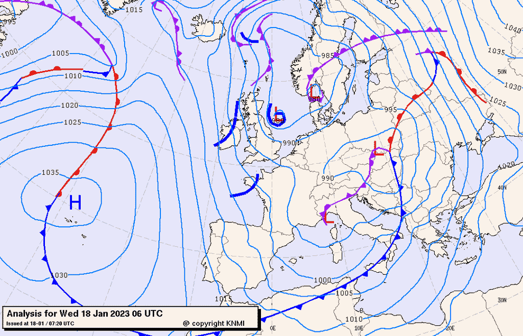 Alta pressione in lieve indebolimento durante questo fine settimana a causa di infiltrazioni di aria più umida dalla Francia che porteranno un temporaneo peggioramento del tempo nella giornata di domani.