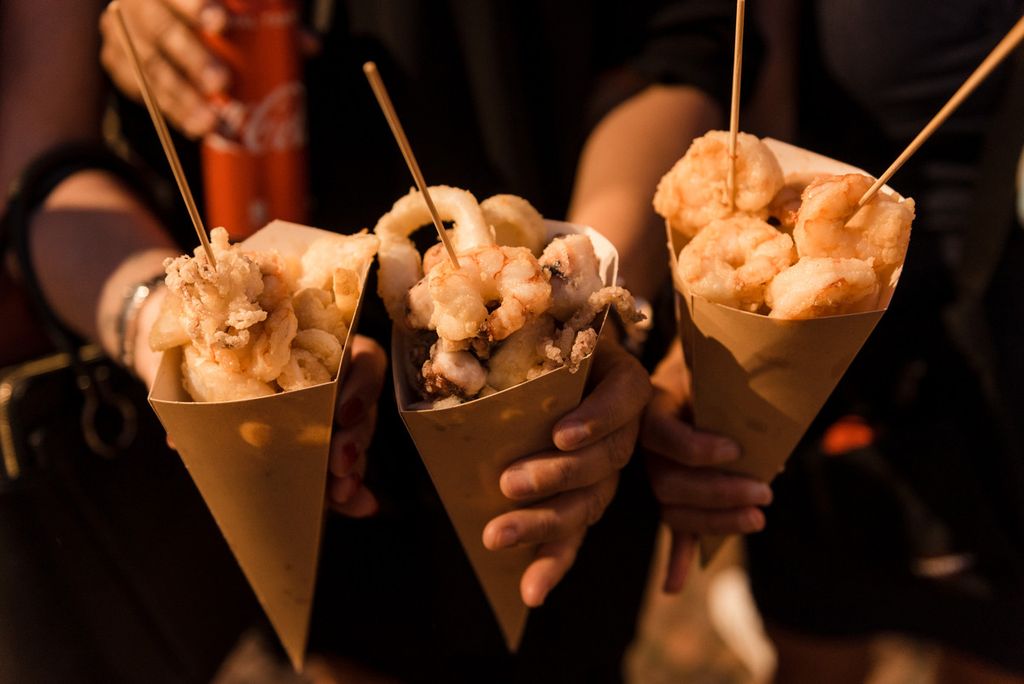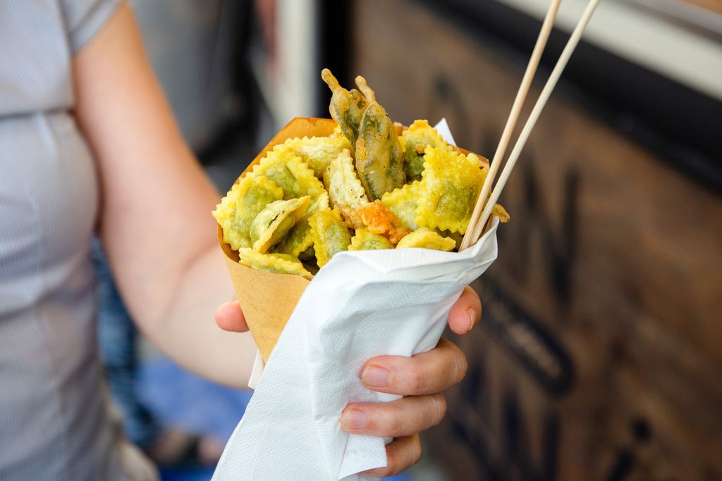 Olive ascolane, pane e panelle, pane cunzato e pane con milza, mini arancini, pan tometta, pan tartufo, pan pork, panzerotti, gnocco fritto con salumi e nutella, pinsa, raviolini del plin, cuzzetiello napoletano completano il panorama culinario nazionale, per poi “viaggiare” verso hot dog, pulled pork, burritos, tacos, nachos, falafel, pita, specialità thaï, vietnamita e filippine, pad thai, korean corn dog, ravioli al vapore, involtini alle verdure, eby fry, takoyaki, samossa, tom yum, asado, hamburger di angus.