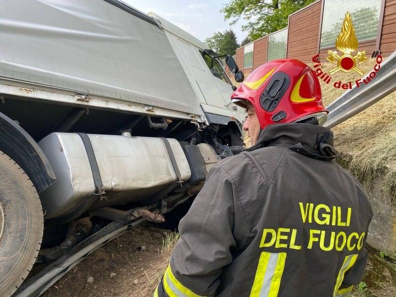 All'altezza di Albizzate, per cause da accertarsi - spiegano i vigili del fuoco di Varese, intervenuti con un'autopompa - il conducente di un mezzo pesante ha perso il controllo del veicolo finendo parzialmente fuori dalla sede stradale. Gli operatori hanno messo in sicurezza l’automezzo e collaborato con il personale sanitario. Il traffico veicolare è rallentato su una sola corsia di marcia. Le operazioni sono tuttora in corso.