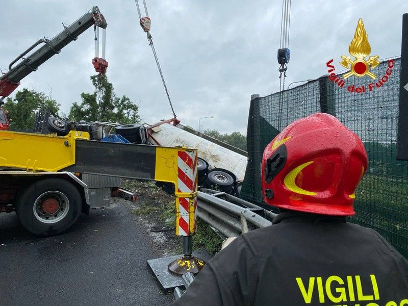 I lavori di recupero sono stati particolarmente complessi visto il peso del mezzo incidentato e la posizione dello stesso, inclinato a bordo carreggiate. Per recuperare il camion sono state impiegate tre autogrù: una dei vigili del fuoco e due di una ditta specializzata.