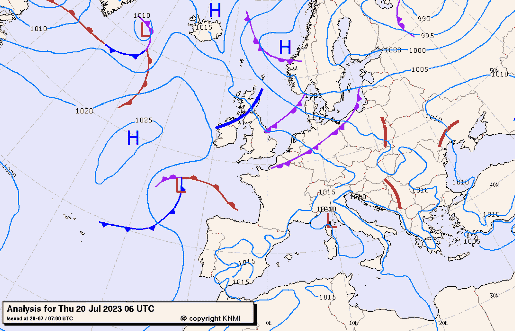 Persiste, sull'Europa meridionale centro-occidentale, la vasta area anticiclonica di origine africana. Una saccatura, avente il suo minimo sulla penisola scandinava, sarà responsabile di instabilità sui territori dell'Europa settentrionale centro-orientale.