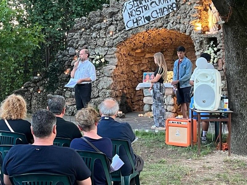 «Di fronte alla violenza della morte potremmo pensare a un albero tagliato troppo presto e senza frutti - le parole pronunciate da don Stefano, che per un attimo hanno fermato il cuore di tutti - Ma il frutto di una vita non si misura con le cose che facciamo, ma nella capacità che abbiamo nel costruire legami di amicizia veri. Ed è qui che si rende presente il signore. I ricordi che abbiamo di Chiara e Christian sono il frutto maturo di una vita piena. Noi già qui, già oggi possiamo vedere segni di resurrezione. Ed è nel paradosso di ciò che sentiamo sbagliato ma ricco di amore, che troviamo un segno difficile ma vero. Chiediamo a Maria di aggrapparci a questi frutti in questo momento buio per ritrovare la luce e testimoniare una vita nuova per Chiara e Christian».
