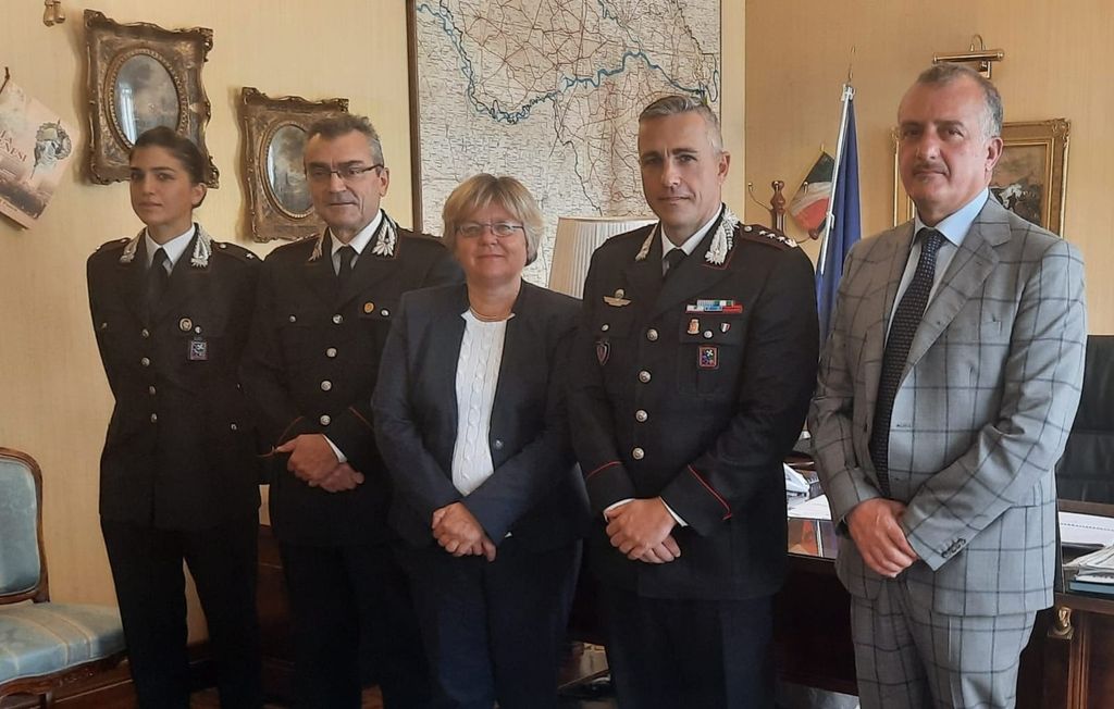 Questa mattina, a Palazzo Malaspina, il Prefetto di Pavia, Francesca De Carlini, ha ricevuto, in visita di presentazione, accompagnati dal Comandante Provinciale dei Carabinieri, Colonnello Marco Iseglio, il Tenente Colonnello Sandro Colongo e il Sottotenente Antonietta Giordano, assegnati al Comando Provinciale di Pavia, nell’ambito dei recenti avvicendamenti e il Tenente Ferdinando Columpsi, già comandante del Nucleo Operativo Radiomobile di Vigevano, che andrà a comandare il Nucleo Informativo.