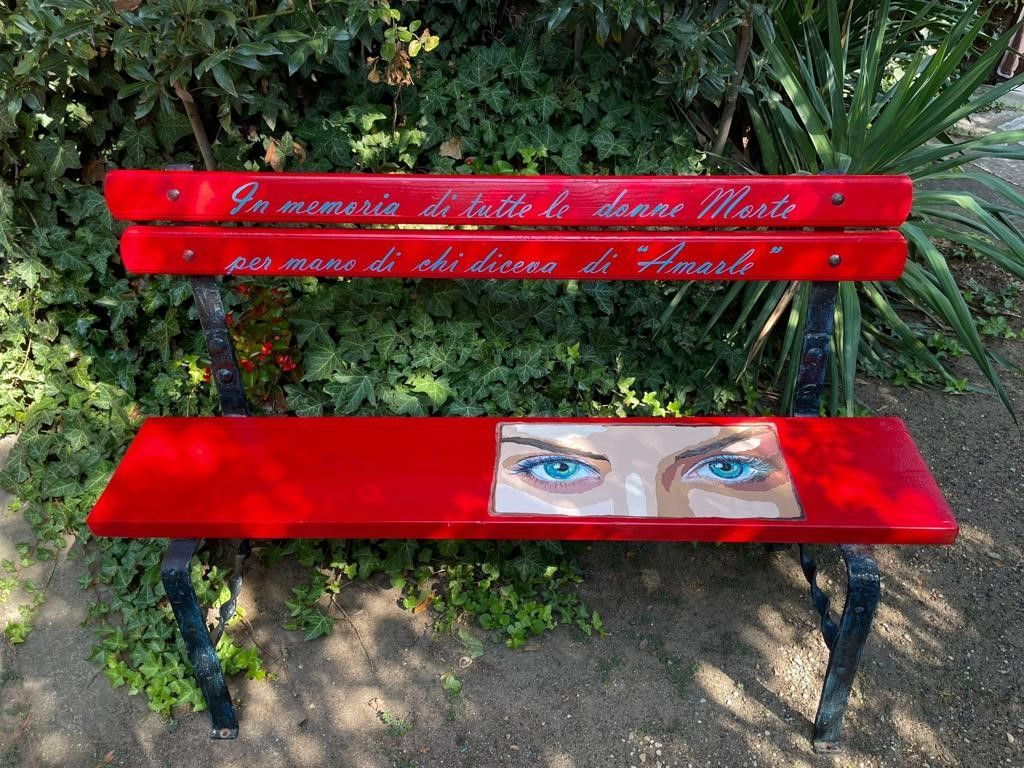 Il rosso vivo di questa panchina, come quelle delle migliaia ormai installate in borghi e città sempre da monito per uomini e donne: gli uomini perché abbiano la forza di non voltarsi mai dall’altra parte e le donne perché non si sentano mai sole in questa lotta, che non concede mai pause, ma che va affrontata con determinazione.