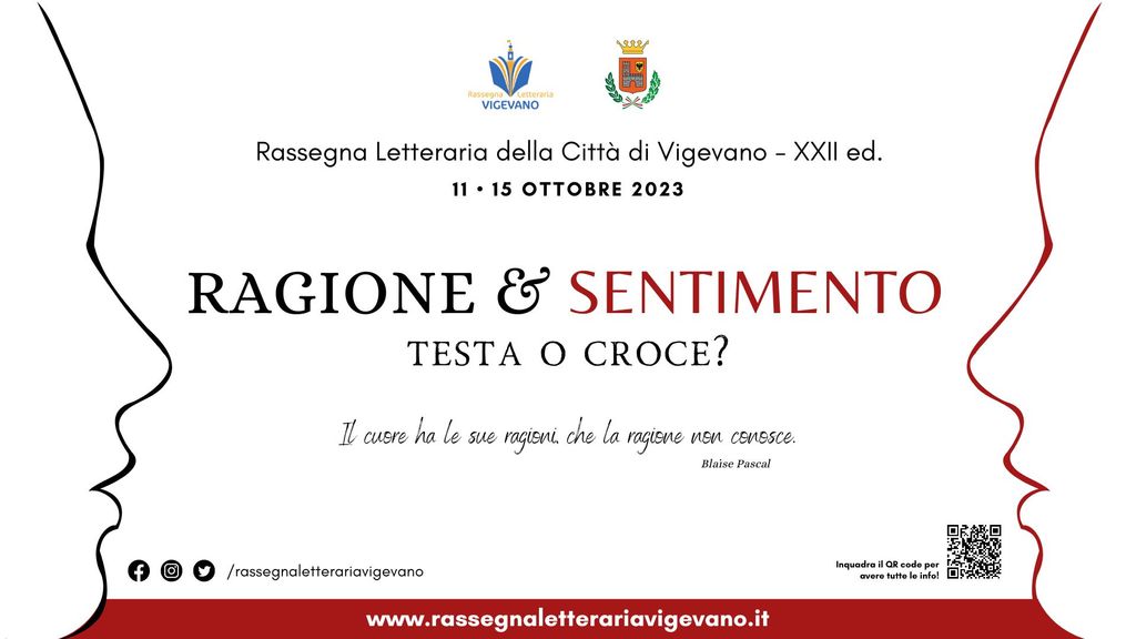 È stato presentato oggi il programma completo della XXII edizione della Rassegna Letteraria della Città di Vigevano “Ragione e sentimento: testa o croce?”, che si terrà nella città ducale dall'11 al 15 ottobre 2023 e sarà ospitato al Teatro Cinema Odeon (via Berruti 2).
