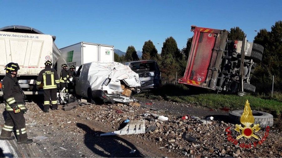 Nel sinistro sono rimasti coinvolti tre camion, un furgone e un’autovettura. Sul posto sono subito intervenuti i soccorsi, con numerose ambulanze in codice rosso. Miracolosamente nessuna delle persone coinvolte avrebbe riportato ferite gravi.